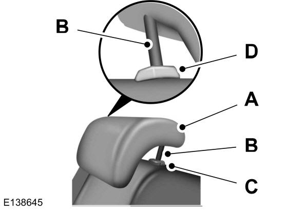 Sollevare il poggiatesta posteriore quando il sedile posteriore è occupato da un passeggero.Quando si usa un sistema di ritenuta per bambini rivolto in avanti sul sedile posteriore, rimuovere sempre il poggiatesta dal sedile stesso.