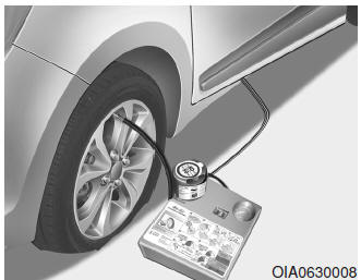 Il Kit di riparazione dei pneumatici è una soluzione temporanea per il pneumatico e si consiglia di farlo controllare da un rivenditore autorizzato HYUNDAI.