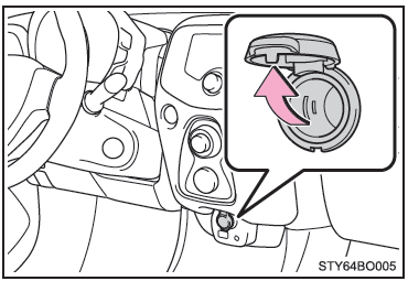 NOTA ■Per evitare il danneggiamento della presa di alimentazione Quando la presa di alimentazione non viene utilizzata, chiudere lo sportello. Corpi estranei o liquidi che penetrano nella presa di alimentazione possono causare un cortocircuito. ■Per evitare lo scaricamento della batteria A motore spento, non utilizzare la presa di alimentazione più del necessario. |